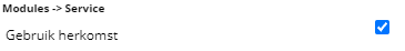 Om gebruik te kunnen maken van deze functionaliteit dient u de instelling bij modules --> service 'gebruik herkomst' activeren. U kunt deze instelling vinden als u naar beheer -> instellingen gaat en zoekt op 'herkomst'.