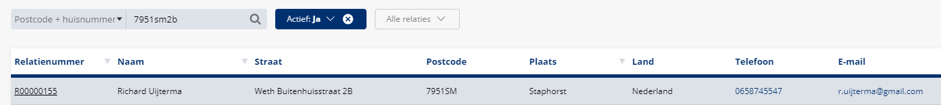 Je kan in het relatieoverzicht zoeken op postcode + huisnummer. Voor deze update kon de juiste relatie alleen gevonden worden als je zocht op [postcode spatie huisnummer].